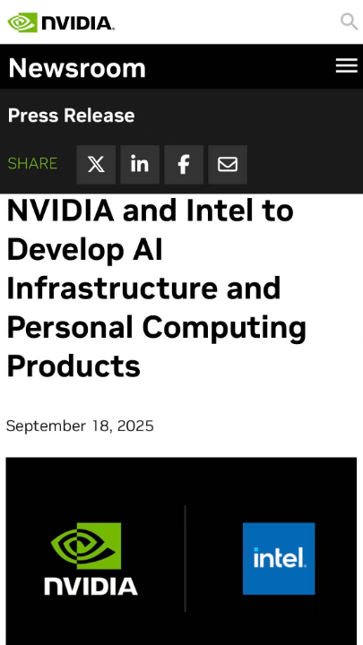 在数据中心领域,英特尔将为英伟达定制x86 CPU,由英伟达将其集成至人工智能基础设施平台并投放市场。在个人计算领域,英特尔将生产并向市场供应集成英伟达RTX GPU芯片的x86系统级芯片(SOC)。英伟达将以每股23.28美元的价格向英特尔普通股投资50亿美元。