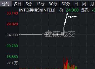 受利好消息影响,英特尔美股盘前短线拉升,涨超30%。